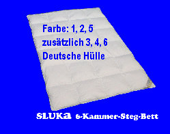 Kammer-Steg-Betten bestehen aus der in der Bezeichnung angegebenen Anzahl Kammern, die durch eingearbeitete Stege unterteilt sind. Das Füllmaterial kann nicht von einer Kammer in die andere rutschen und wird innerhalb der Kammer durch die Stege am "wandern" gehindert.